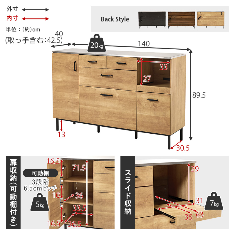 【商品サイズ(約)】幅140×奥行42.5×高さ89.5cm