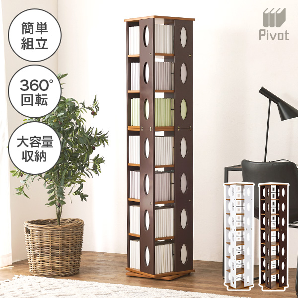 本棚 回転 おしゃれ 完成品 回転式 コミック本棚 回転ラック 漫画 大容量 ハイタイプ 高さ167cm 7段 ピボット