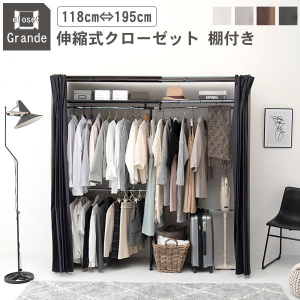 ワードローブ クローゼット 収納 カバー おしゃれ 木製 安い カバー付き ラック ハンガー 衣類収納 伸縮クローゼット 大容量 大型 棚あり グランデ