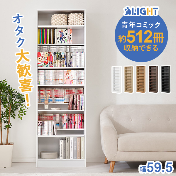 本棚 大容量 スリム 多機能 幅59.5 薄型 スライド マガジンラック コミック おしゃれ 漫画 収納 棚 ラック 収納棚 推し活 ブラウン 白 ホワイト ライト
