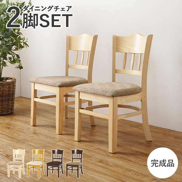 木の温かみを実感できる、天然木「ラバーウッド」を使用したダイニングチェア2脚SET。