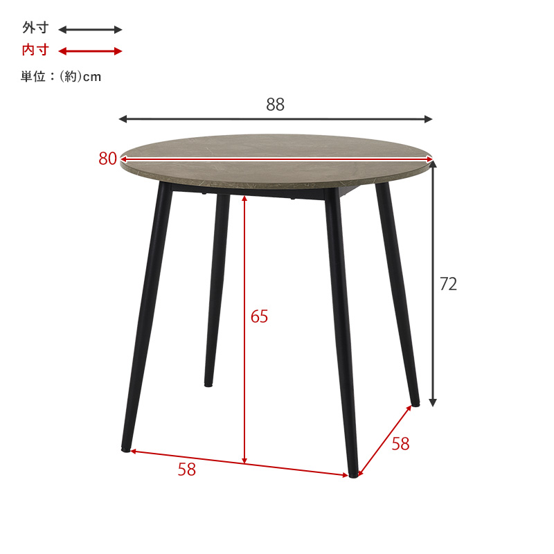 【商品サイズ(約)】幅88×奥行88×高さ72cm(天板直径80cm)