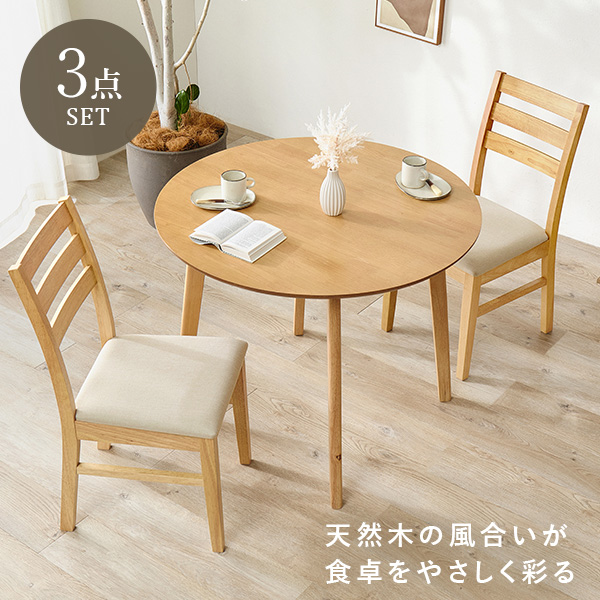 ダイニング 3点セット 2人用 丸形 チェア テーブル 円形テーブル 北欧 木製 シンプル おしゃれ ダイニングチェア チェアー ダイニングテーブル