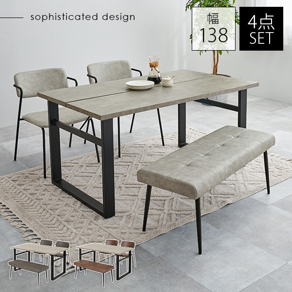 ダイニングセット 4人 4点 北欧 おしゃれ 食卓テーブル 椅子 チェア テーブル 合成皮革 レザー調 ヴィンテージ風 食卓椅子 モダン Z型フレーム