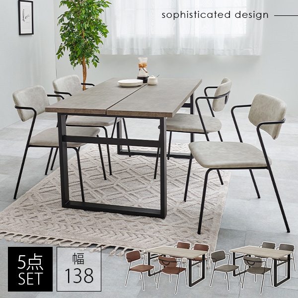 ダイニングセット 4人 5点 北欧 おしゃれ 食卓テーブル 椅子 チェア テーブル 合成皮革 レザー調 ヴィンテージ風 食卓椅子 モダン Z型フレーム