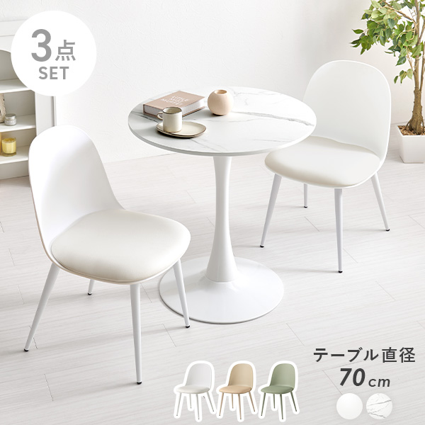 ダイニングテーブルセット 丸 2人 2人用 ダイニングセット 3点 丸テーブル ダイニング カフェテーブル 70cm カフェテーブルセット 安い 3点セット おしゃれ 白