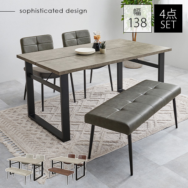 ダイニングセット 4人 4点 北欧 おしゃれ 食卓テーブル 椅子 チェア テーブル 合成皮革 レザー調 ヴィンテージ風 食卓椅子 モダン ステッチ入り