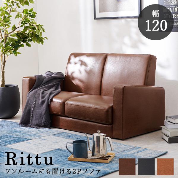 ソファ 2人掛け 合皮 おしゃれ モダン コンパクト 2人 カフェ風 インテリア ビンテージ 家具 北欧 ロータイプ コンパクト 幅広 120 リッツ