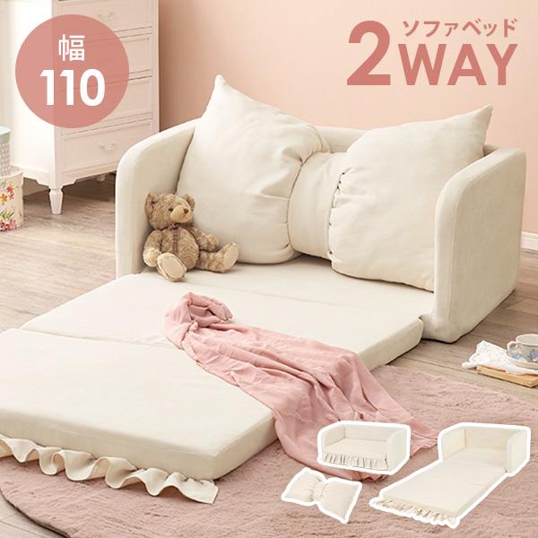 ソファ 2人掛け ソファーベッド おしゃれ ソファベッド コンパクト 完成品 ソファ ベッド ソファー ベット リボン かわいい クッション付 フラン