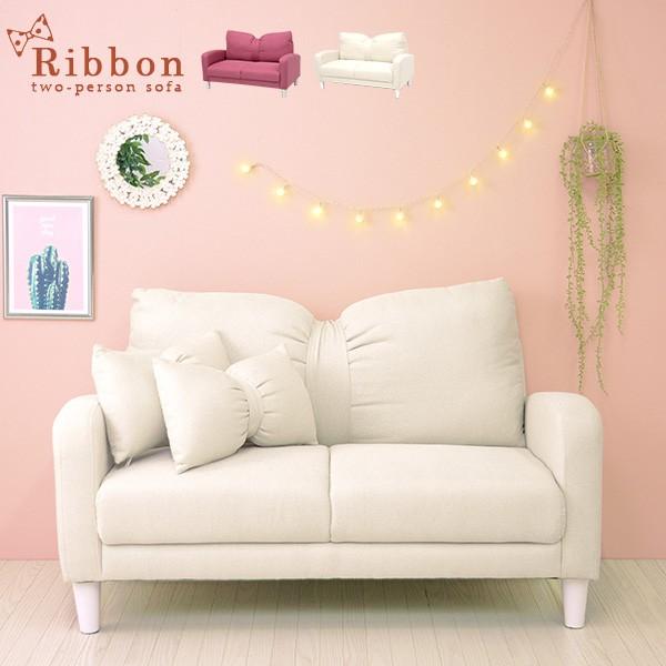 ソファ ソファー ローソファー ローソファ 2人掛け おしゃれ 安い コンパクト かわいい 姫系 ピンク 姫系家具 白 ホワイト 可愛い リボン
