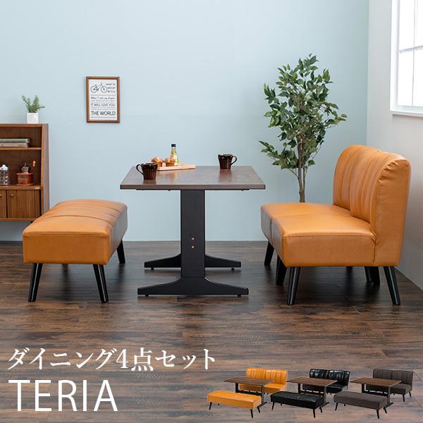 ダイニングテーブルセット 4人用 4人 おしゃれ ダイニングセット 北欧 安い ベンチ ソファ 食卓テーブルセット 食卓テーブル4人用 幅110cm 4点 レトロ テリア