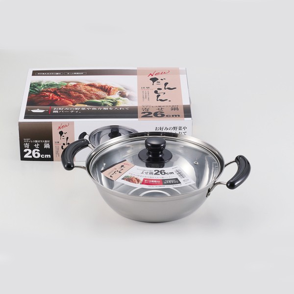 NEWだんらん ステンレス製ガラス蓋付よせ鍋26cm