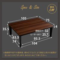 カジュアルこたつ ヴィンテージタイプ 石英管ヒーター付 105cm×75cm幅 長方形テーブル本体単品 リビングこたつ シンプル 北欧 おしゃれ 家具調 座卓 モダン