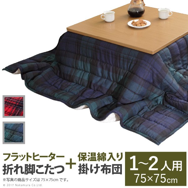 こたつ テーブル スクエアこたつ 〔ヴィッツ〕 75x75cm+保温綿入りこたつ布団チェックタイプ 2点セット 折れ脚