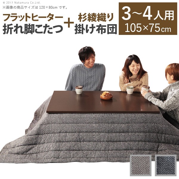 送料無料 送料込み こたつ テーブル 長方形 折れ脚 フラットヒーター (こたつテーブル 105x75cm+ヘリンボーン織こたつ布団) 2点セット スクエアこたつ バルト コタツ リビングテーブル 折れ脚 折りたたみ 継ぎ脚 節電 おしゃれ 木製 シンプル 省スペース コンパクト