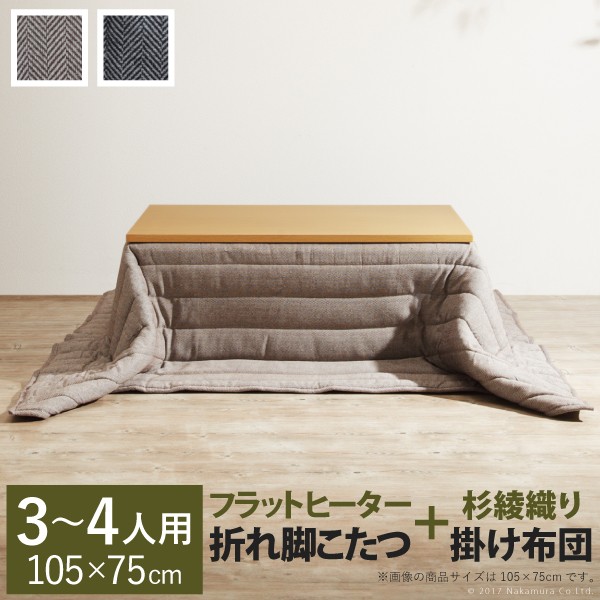 こたつ テーブル スクエアこたつ 〔ヴィッツ〕 105x75cm+ヘリンボーン織こたつ布団 2点セット 折れ脚
