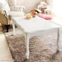 こたつ 猫脚 長方形 ねこ脚こたつテーブル-フローラ105x60cm はっ水リバーシブル省スペースこたつ布団 2点セット テレワーク リモートワーク ステイホーム