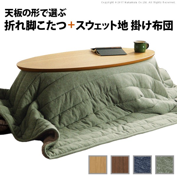 こたつ 折りたたみ フラットヒーター折れ脚こたつ 〔アロー〕+スウェット地こたつ掛布団 2点セット 北欧