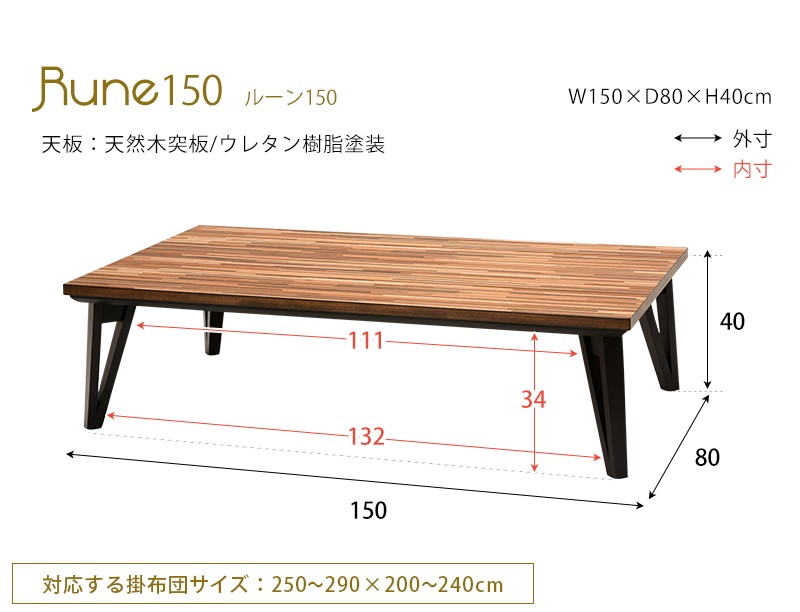 こたつテーブル 150×80cm 長方形 おしゃれ こたつ テーブル リビングコタツ フラットヒーター ローテーブル センターテーブル ルーン150