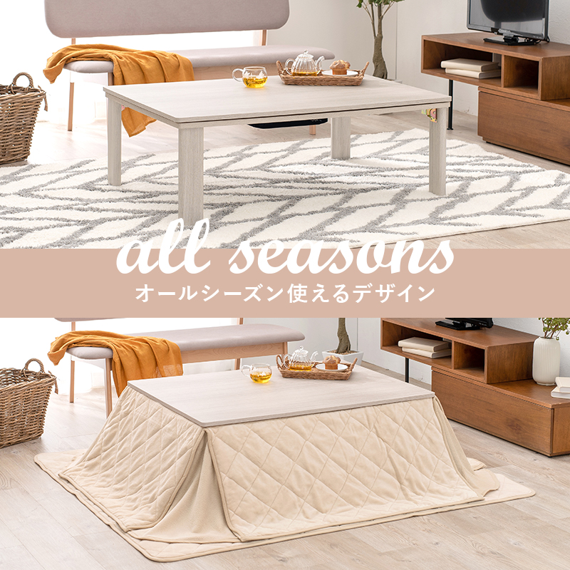 こたつ 折りたたみ 折れ脚 折り畳み 木目調 105×75cm ローテーブル オールシーズン センターテーブル リバーシブル天板 ホワイト ナチュラル おしゃれ かわいい