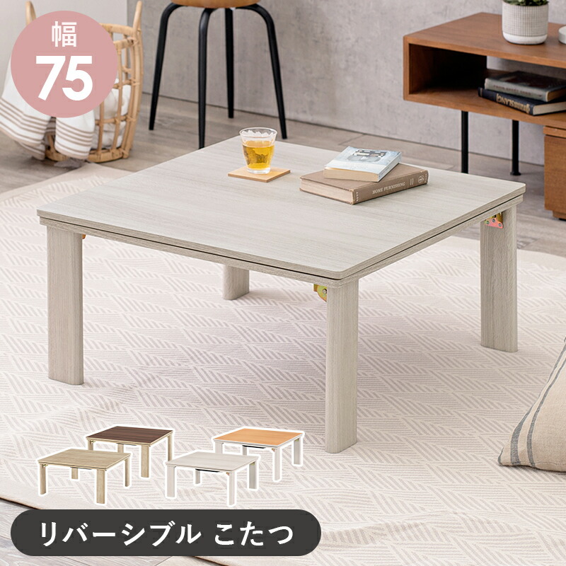 こたつ 折りたたみ 75×75cm 正方形 ローテーブル カジュアル 折れ脚 折り畳み 木目調 オールシーズン センターテーブル コンパクト リバーシブル天板 おしゃれ