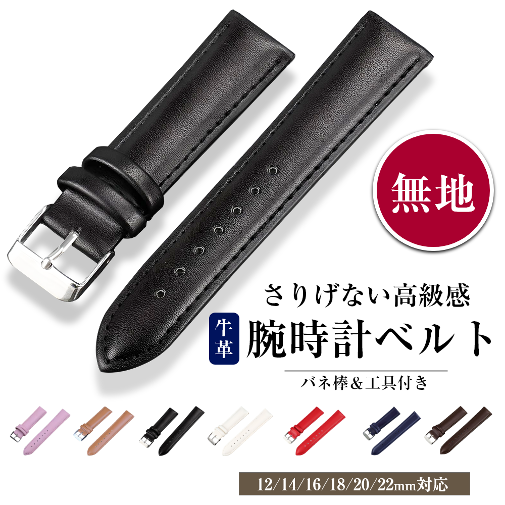 腕時計 ベルト 交換 バンド 革 無地 20mm 18mm 16mm 22mm 14mm 12mm バネ棒 ポイント利用 爆買