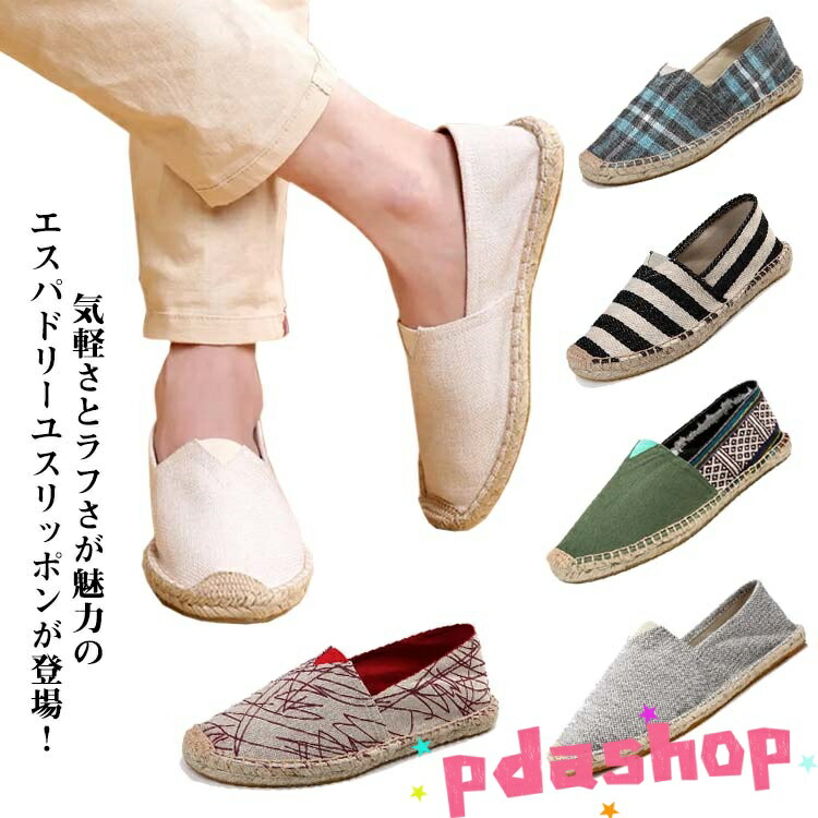 エスパドリーユ スリッポン レディース メンズ 男女兼用 ぺたんこ スニーカー フラットシューズ ジュート リネン 麻 帆布 軽量 春夏 無地 ス