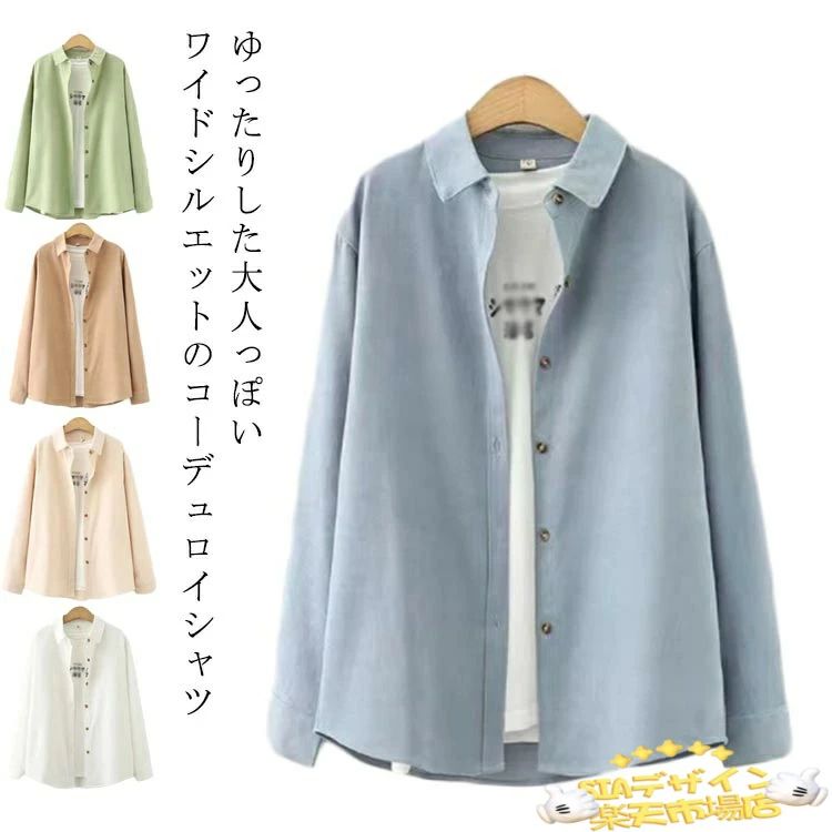 ブラウス 無地 コーデュロイ トップス シャツ 長袖 コーデュロイシャツ ゆったり カラーシャツ ネルシャツ 細畝 あったか シャツ レディー