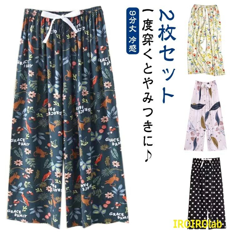 ステテコ とろみ リラックスパンツ 2枚セット レディースステテコ 9分丈 ウェストゴム 9分丈 パジャマ 涼しい 夏パンツ 部屋着 ワイドパンツ