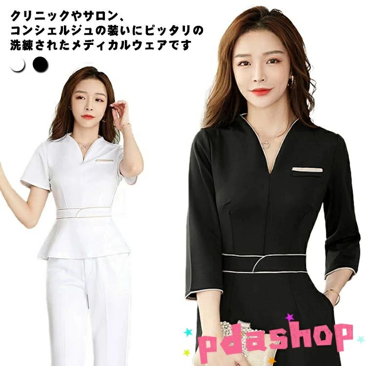 送料無料 ユニフォーム エステ サロン通勤 レディース 女性 制服 ウェストシャープ Vネック おしゃれ 半袖 七分袖 ジャケット 上下セット エ