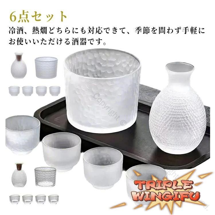 耐熱ガラス6点セット 日本酒用冷酒器 酒器セット 徳利 お猪口付き 保温保冷対応 熱燗 燗酒器 和酒用冷酒グラス 誕生日 敬老の日プレゼントに