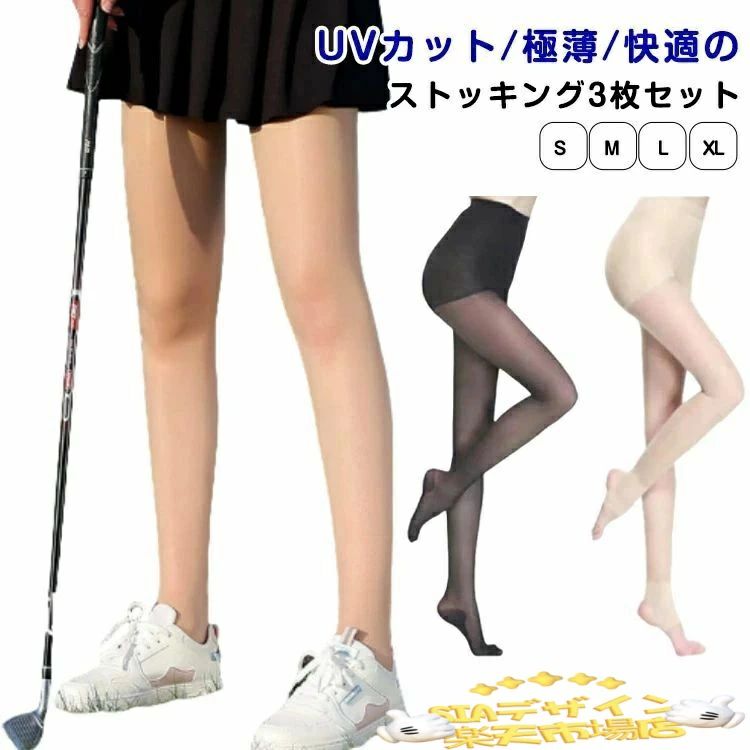 夏用 3枚セット レディース ゴルフスパッツ 春夏 UVカット ストッキング 素足 レギンス スポーツストッキング ストレッチ ゴルフストッキング 伝線にくい 3枚セ
