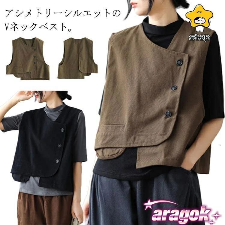ベスト 春服 ショート丈 ノースリーブトップス アシメトリー トップス 袖なし 斜めデザイン レディース 春 夏 コットン 綿 ナチュラル