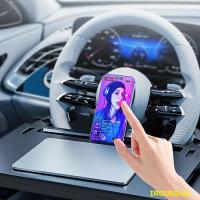 ハンドルにひっかけるだけでPC作業や食事に便利な車載テーブルとして使用できる。