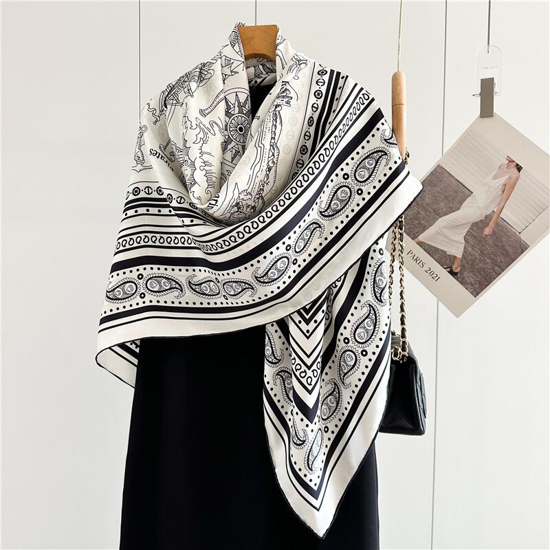 春夏 レディース 大人 ストール スカーフ おしゃれ ペイズリ柄 モノトーン バイカラー バンダナ柄 上質 高級 大判ストール 大判スカー