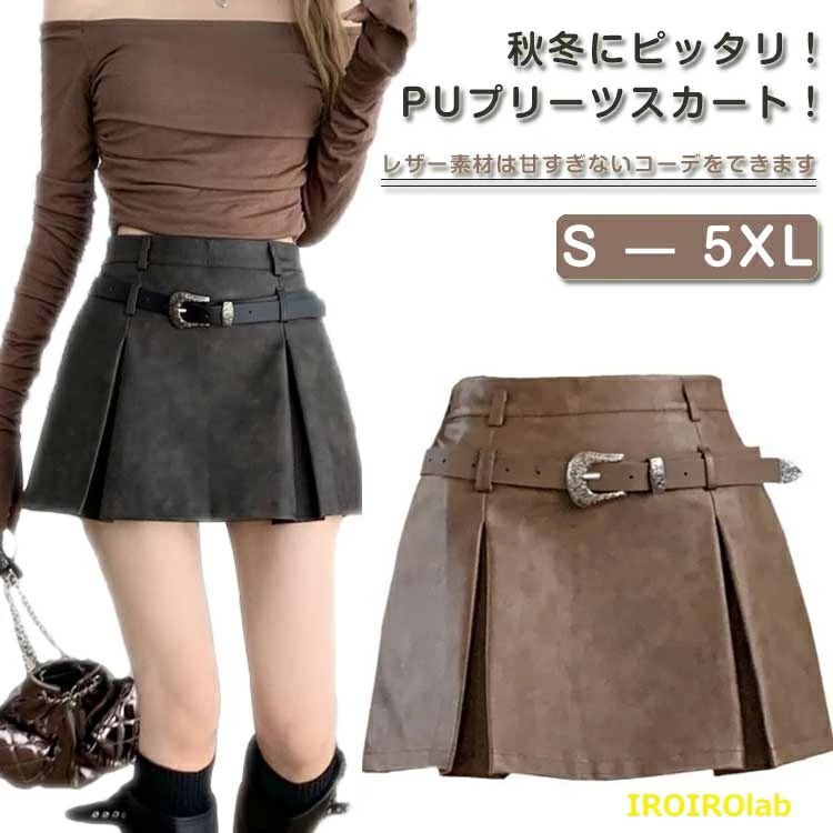 スカート Aライン プリーツスカート 4XL レザースカート レザー調 ミニスカート 大人向き ミニ丈 短い フレアミニスカート 大人カジュアル 大