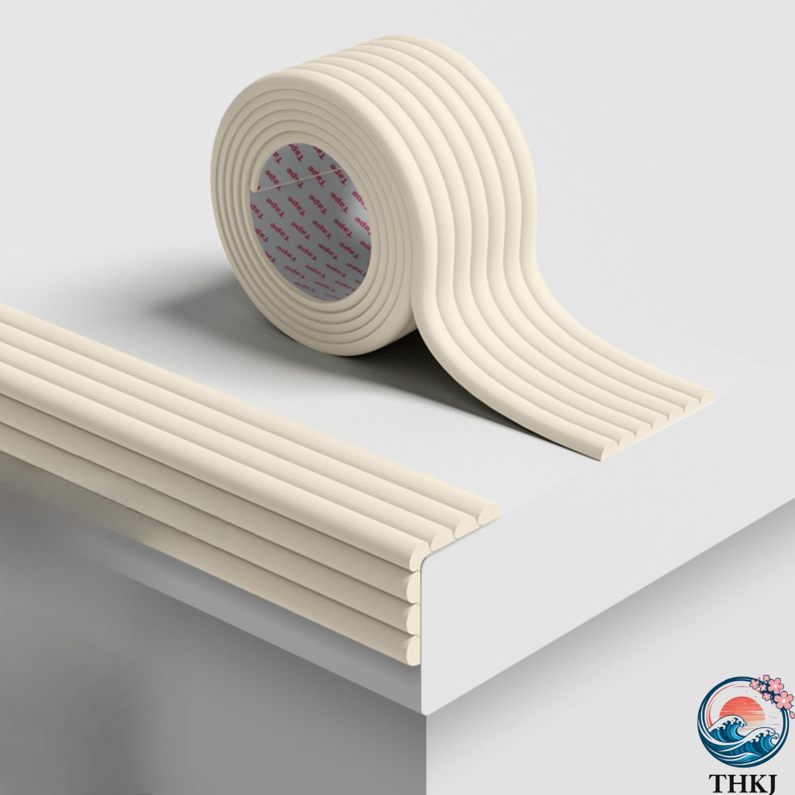 衝突防止クッションコーナーガード ウォールクッション 2m 5m背面粘着タイプ即時貼り付け可能 W型エコ素材 ベージュ色テーブル角壁角保護カバー 家具縁保護-THKJ