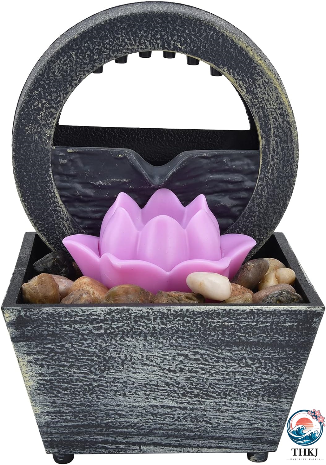 小さな屋内卓上噴水 蓮の装飾と川の石が付いた禅瞑想の滝 オフィス 自宅 寝室のデスクトップ装飾用