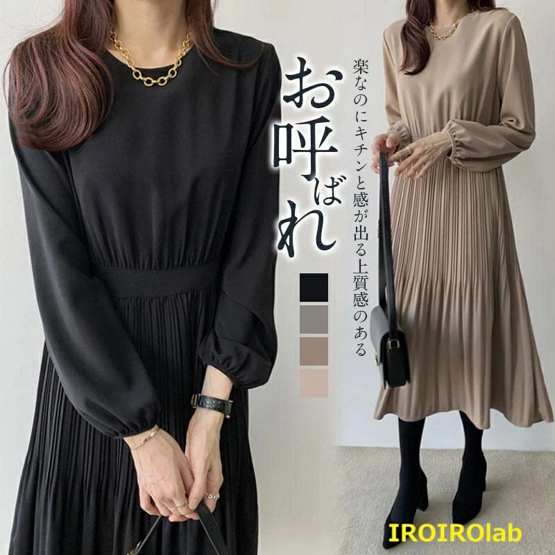 卒業式 母 服装 服 ワンピース レディース プリーツワンピース 長袖 卒業式 入学式 通勤 ロング丈 Aラインワンピース 着痩せ フォーマルワン