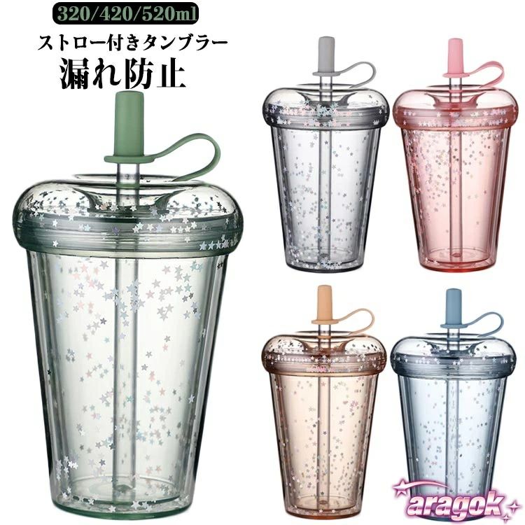 320/420/520ml ストロー付きタンブラー 漏れ防止