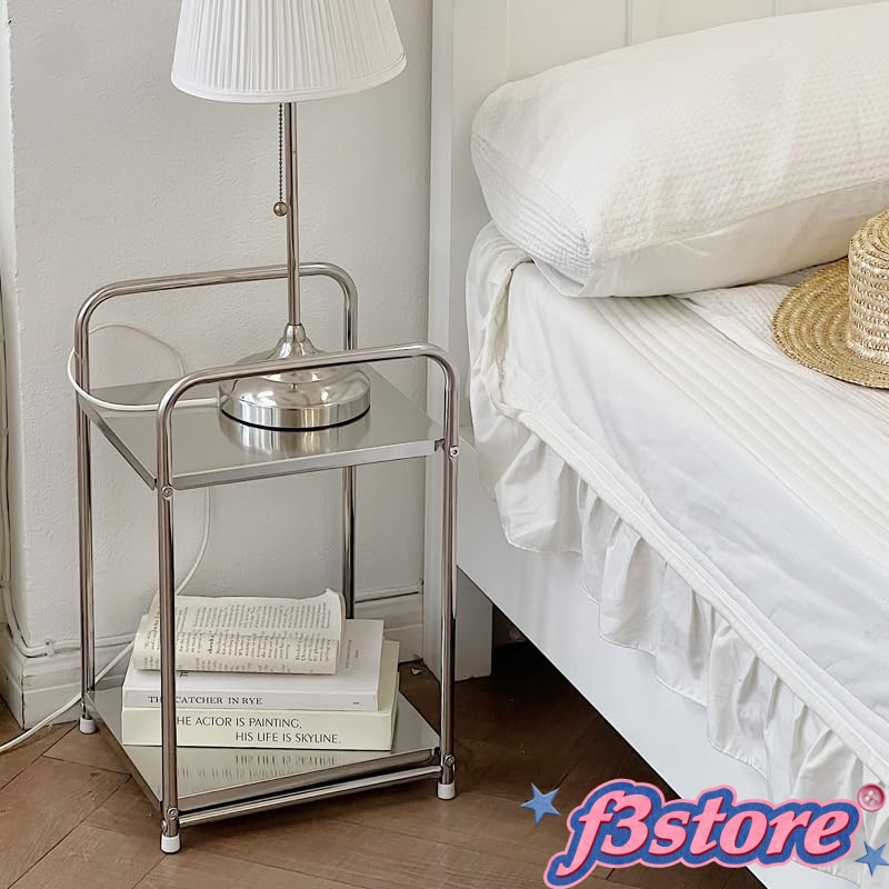 2層レトロ小さなコーヒーテーブルソファサイドテーブルベッドサイドテーブルステンレススチールラック