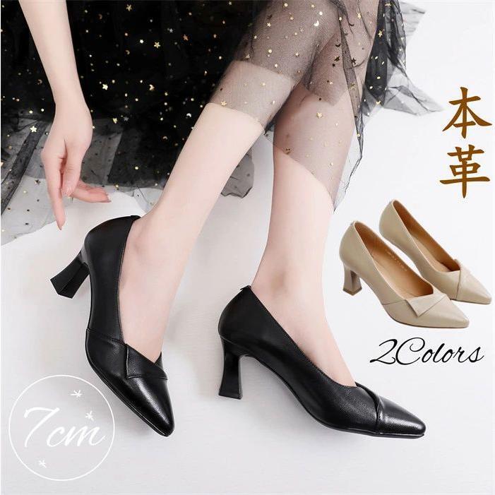パンプス 本革 ハイヒール 7cm 牛革 痛くない 幅広 靴 レディース ヒール シューズ 軽量 夏 春秋 通勤 結婚式 ポインテッドトゥ リクルート