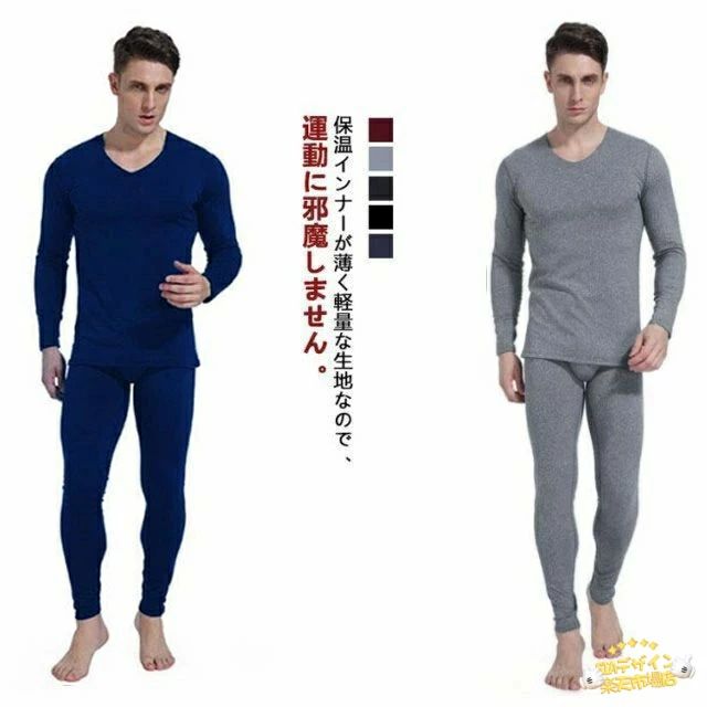 防寒着 メンズ vネック 保温インナー 裏起毛 インナー上下セット [防寒肌着?吸湿発熱?防寒?保温] インナーウェア あったかイン
