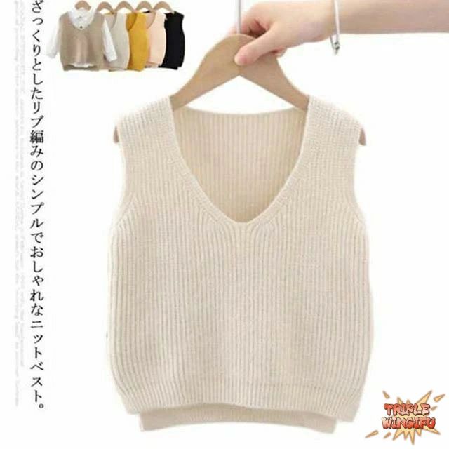 ざっくりとしたリブ編みのシンプルでおしゃれなニットベスト。