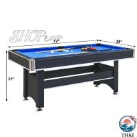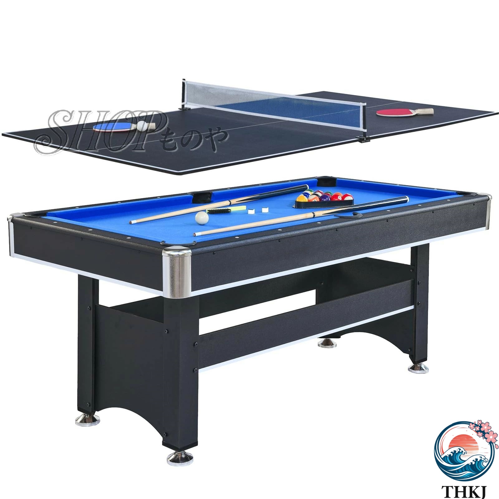6フィートのビリヤードテーブル、卓球トップ、ビリヤードボール1セット、アッシュウッドキュー2個、三角形のラック、ポリシールされた卓上、調節可能なフットパ