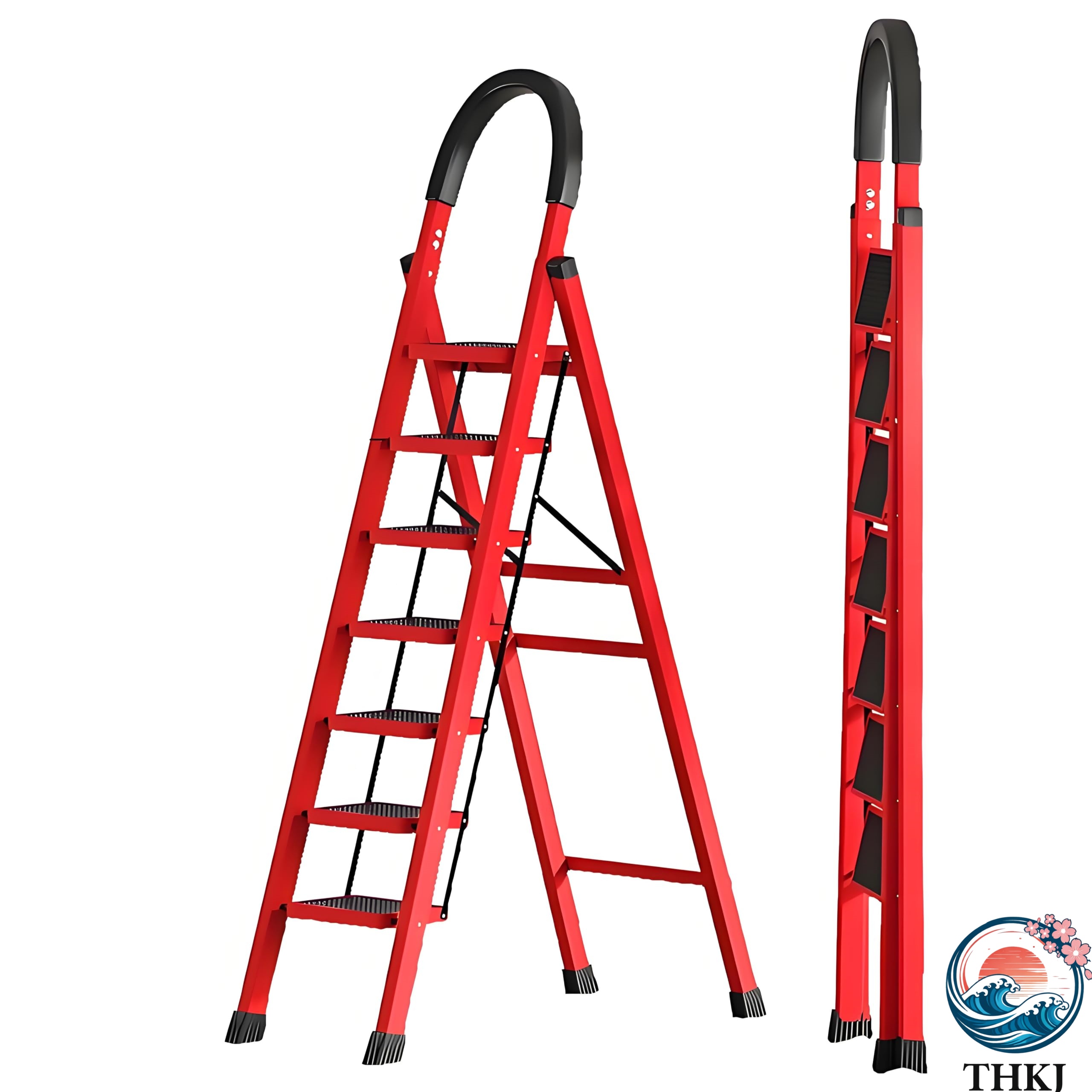 ? 【家庭の悩みを解決するアシスタント】商品サイズ:幅51cm×180cm(展開時)幅51×高さ190cm(折り畳み時)。折りたたみ式ハシゴとして最大160cmの高所メンテ可能になります。天井の電球交換からキッチン棚の整理まで、室内作業を効率化する「変形自在」設計です。工具置き場付きで両手がふさがる作業も安心します。