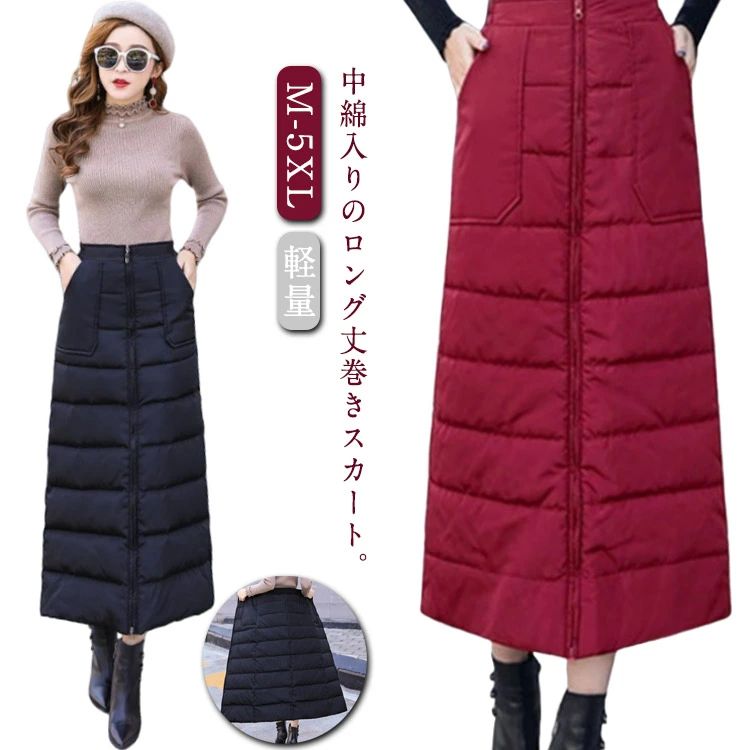中綿スカート ロング丈 防寒対策 ボトムス ラップスカート マキシ丈 巻きスカート ロングスカート 巻きスカート 冬用 大きいサイズ キルティ