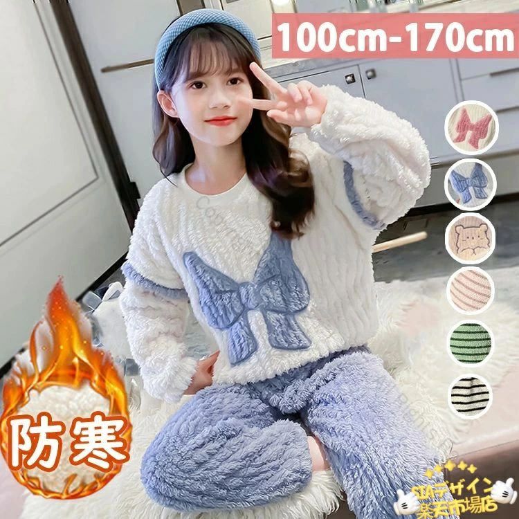 ルームウェア もこもこ キッズ パジャマ 上下セット 冬用 あったか 子供服 女の子 男の子 トップス 長袖 ロングパンツ ジュニアサイズ可愛い 幼稚園 小学生 ナイ
