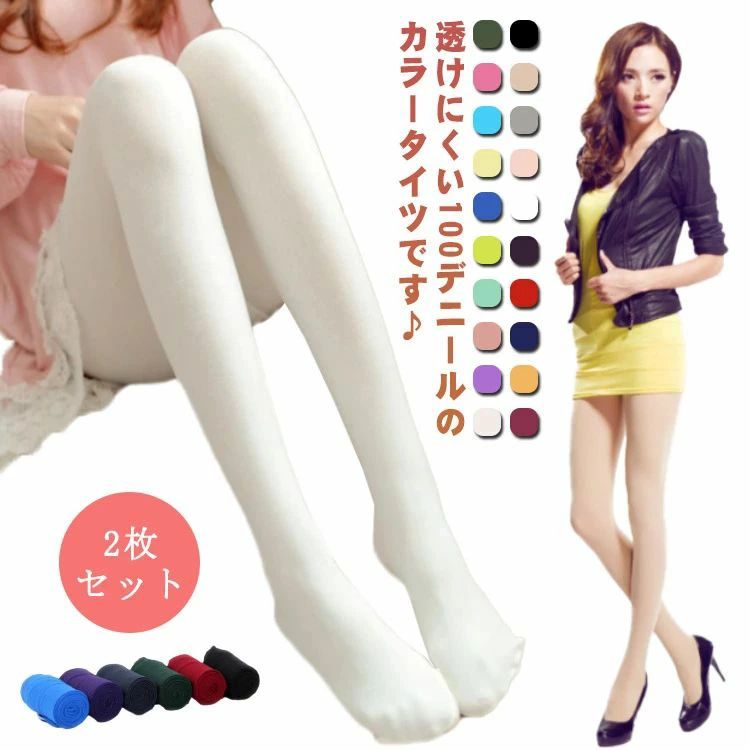 タイツ 2枚セット カラータイツ 透けにくい 100デニール ストッキング レディース ブラック 婦人 白 黒 春 秋 おしゃれ かわいい ホワイト 黄