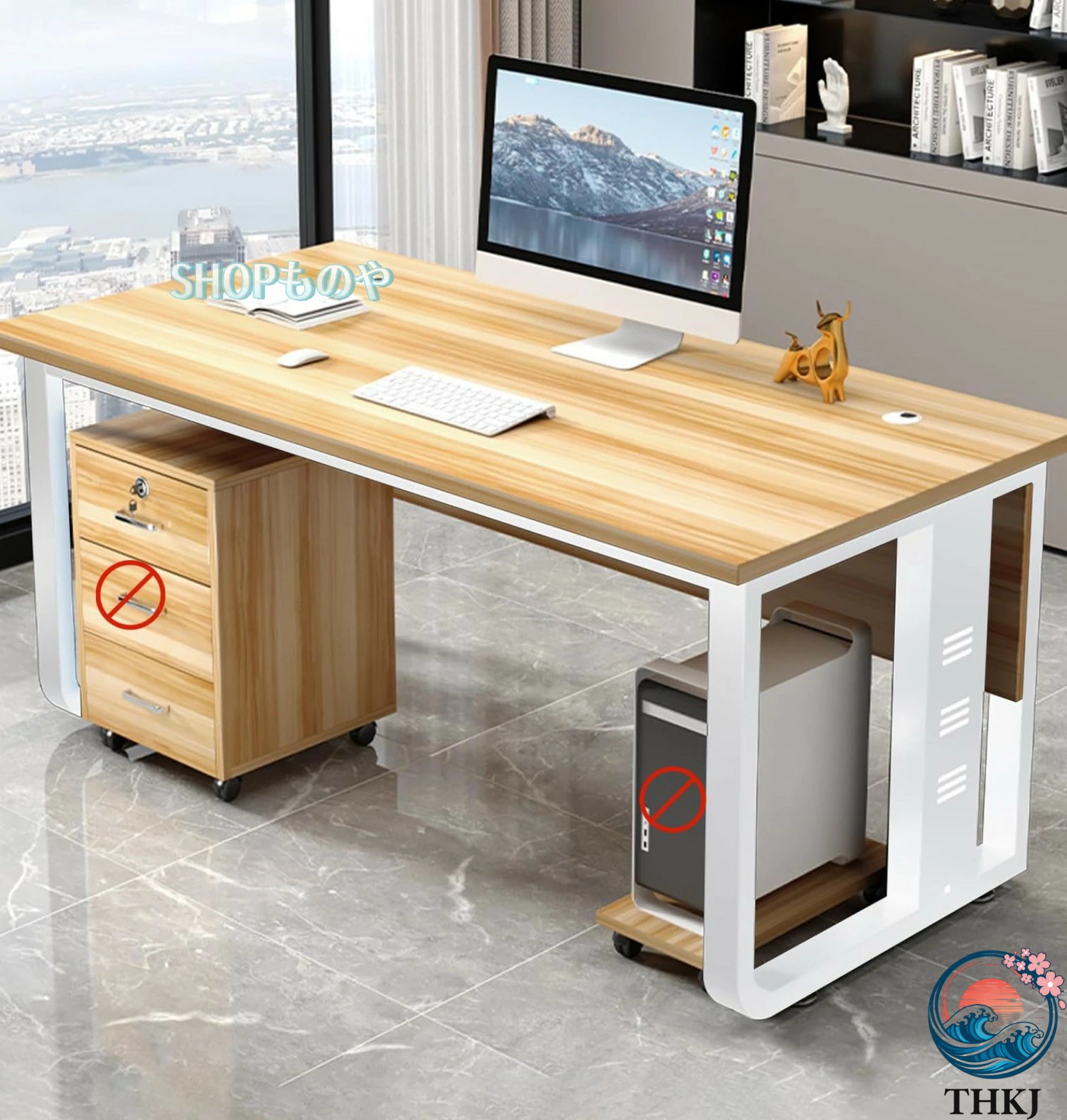 社長テーブル エグゼクティブデスク E1グレードの環境に優しく健康的なボード耐高温性防水性耐傷性 ケーブル配線穴 U字型スチールテーブル脚 強力な耐荷重性を備